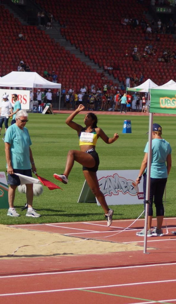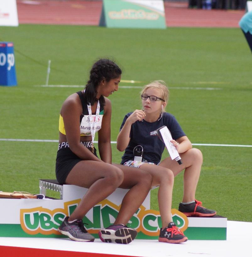 Der Weitsprung will Meera jedoch überhaupt nicht gelingen. Drei total missglückte Versuche sind das Endresultat und es reicht lediglich für eine Weite von 4.70m. Nun beginnt für Meera das lange Warten auf die Rangliste. Eigentlich dachten wir alle, dass nun die Medaillenträume vorbei sind. Aber es kommt ganz anders.